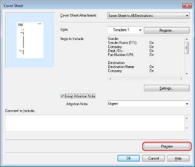 If you want to check the preview image on the cover sheet, click [Preview].