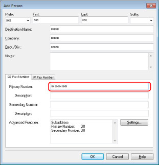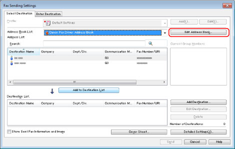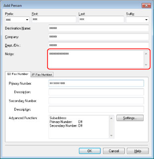 You can also edit previously registered single person addresses. For more information, click [Help] in the bottom right-hand corner of the fax driver window to view Help.