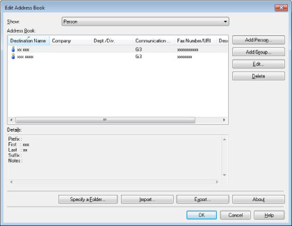 You cannot access or edit the address book if you do not have access permission to the destination folder of the address book. If this is the case, log on as a user having access permission to the folder, or click [Specify a Folder] in the [Edit Address Book] tab, and change the destination folder of the address book to a folder that you have write permission for (see "Changing the Address Book Export Destination").