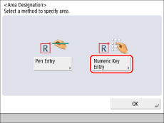 If you designate an area using the edit pen, the output image may not reflect the designated area precisely. To designate an area precisely, enter the values using the numeric keys.