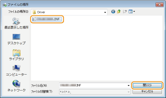 追加するドライバーが収録されているフォルダーを指定し、Infファイルを選んだあと、[開く]をクリックする