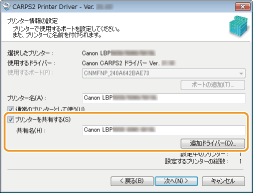 共有プリンターの名前を入力します。 [追加ドライバー]