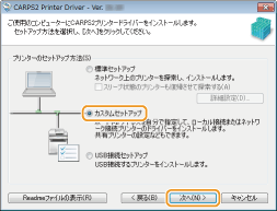 [カスタムセットアップ]を選び、[次へ]をクリックする