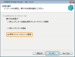 [既存プリンタードライバーの更新]を選び、[次へ]をクリックする