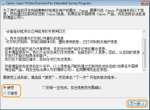 如果选择 [接受],则安装 Product Extended Survey Program。