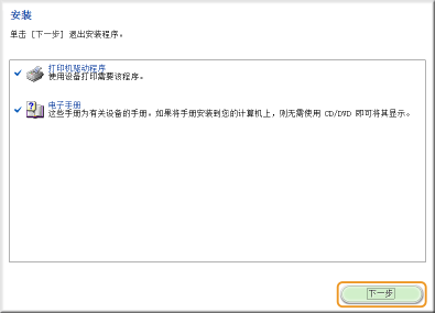 如果已安装打印机驱动程序,在 [选择要安装的打印机] 屏幕之前会显示 [选择过程] 屏幕。对您的打印机,此处进行的选择对安装过程没有影响,只要单击 [下一步]。 ![]() 如果未显示 [IPv6 设备] 选项卡