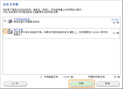 * 但是,如果选择 [自定义安装],则不显示图标。