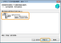检查 [要安装驱动程序的打印机列表] 中的打印机信息,然后单击 [开始]。