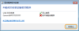 如果连接 USB 电缆时显示类似如下所示的即插即用自动安装屏幕,则单击 [关闭] 或 [取消] 将其关闭。