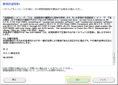 使用許諾契約の内容を確認し、[はい]をクリックする