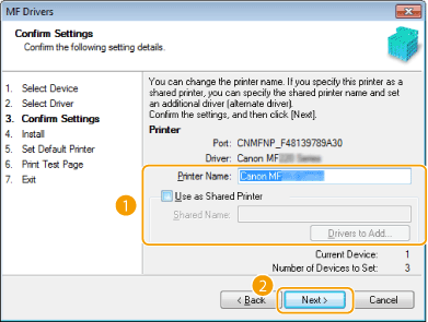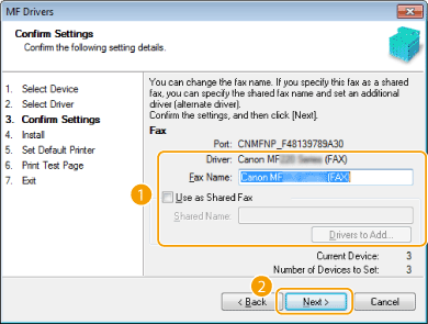 If you have selected the [Use as Shared Printer]/[Use as Shared Fax] check box, install additional drivers as necessary.