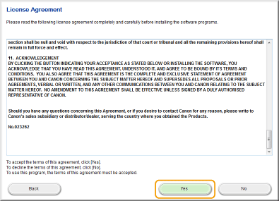 | If you select [Accept], the Product Extended Survey Program is installed. The Product Extended Survey Program is a program to send basic information related to installation and usage of the printer to Canon every month for 10 years. It does not send any other information, including your personal information. You can uninstall the Product Extended Survey Program at any time. Uninstalling the Product Extended Survey Program |