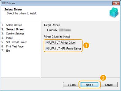 To configure the machine as the machine normally used, select the driver, and click [Next].