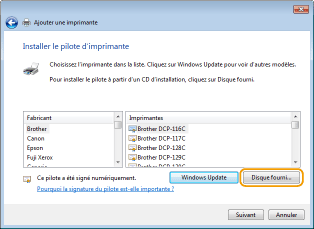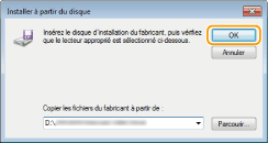 Spécifiez le dossier contenant le pilote d'imprimante comme suit.