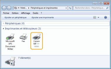 | Lorsque l'installation pour utiliser le protocole WSD est terminée, l'icône de l'imprimante est ajoutée au dossier des imprimantes. |