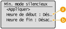 sur le panneau de commande. Cette simple opération permet de réduire le son de l'appareil en cours de fonctionnement. Vous pouvez également spécifier une heure à partir de laquelle l'appareil passe automatiquement en Mode silence.
