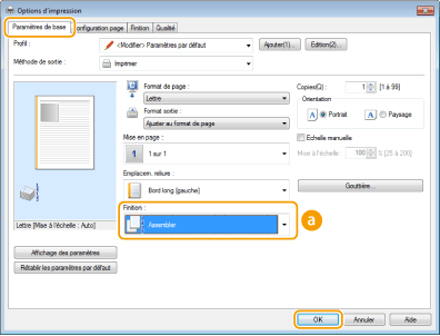 Sélectionnez [Assembler] ou [Grouper] pour [Finition]