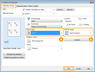 Dans [Ordre des pages], sélectionnez la disposition des pages