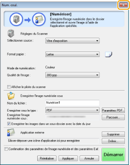 ![]() Vous ne pouvez pas numériser tant que l'écran de configuration de MF Toolbox est affiché. Fermez l'écran avant de lancer la numérisation.