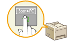 ou (pour le modèle MF211, ) : la numérisation commence instantanément. Le type de numérisation (couleur ou noir et blanc), le dossier de destination du document et d'autres paramètres peuvent être enregistrés sur une touche. Les documents sont alors numérisés selon ces paramètres. Cette section décrit la manière d'enregistrer les paramètres sur une touche et de numériser le document par le biais de la touche considérée. |