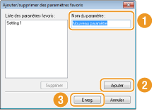 Saisissez un nom dans [Nom du paramètre] et cliquez sur [Ajouter]