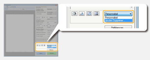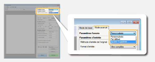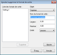 Si vous sélectionnez [Ajouter/Supprimer], vous pouvez ajouter de nouveaux réglages de format de sortie et supprimer les formats ajoutés.