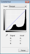 Les résultats de tous les ajustements apportés en matière de luminosité, de contraste (  ), d'histogramme (  ) et de paramètres de courbe de tonalité (  ) apparaissent sous forme de courbe de tonalité et de valeurs numériques. Procédez au contrôle final des réglages liés à la couleur.