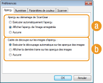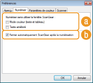 Cliquez sur [Préférences] pour configurer différents réglages, notamment ceux intervenant au cours du processus de numérisation.