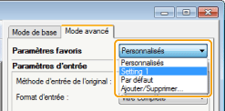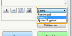 Affichez un aperçu et sélectionnez le réglage mémorisé dans la liste déroulante.