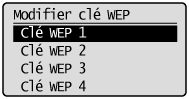 Sélectionnez la clé WEP (1 à 4) à modifier et appuyez sur