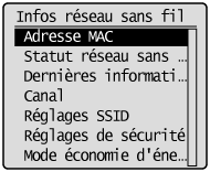 <Informations du réseau sans fil> et sélectionnez le réglage à afficher.