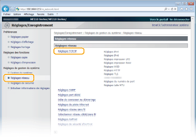 L'écran <Menu> permet aussi d'accéder aux réglages DNS. Réglages IPv4 Réglages IPv6