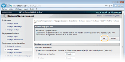 Cliquez sur [Modifier...] dans [Réglages IPv6].