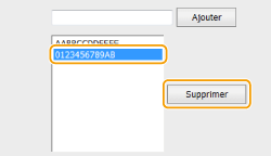 Sélectionnez une adresse MAC et cliquez sur [Supprimer].