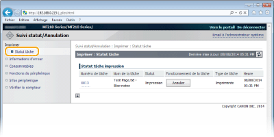 Si vous êtes connecté en tant qu'administrateur système, tous les documents en cours d'impression ou sur le point de l'être figurent dans la liste.