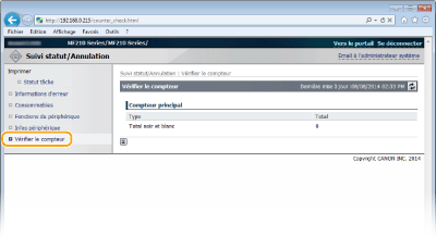 Le nombre total de pages qui ont été imprimées au moyen des fonctions d'impression et de copie s'affiche.