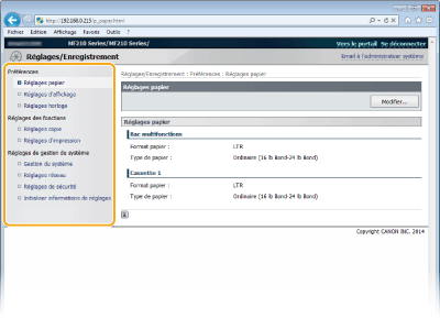 Certains réglages nécessitent que vous vous connectiez d'abord en tant qu'administrateur système avant que vous ne puissiez les modifier.