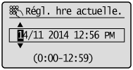 pour définir la date et l'heure ou pour passer matin à l'après-midi (<AM>/<PM>).