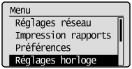 Tous les réglages relatifs à l'horloge répertoriés s'accompagnent d'une brève description. Les réglages par défaut sont signalés par une croix (