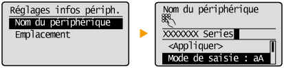 Saisissez <Nom du périphérique> ou <Emplacement> (Saisie du texte)