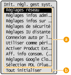 Pour initialiser les réglages dans <Réglages réseau>, vous pouvez également appuyer sur