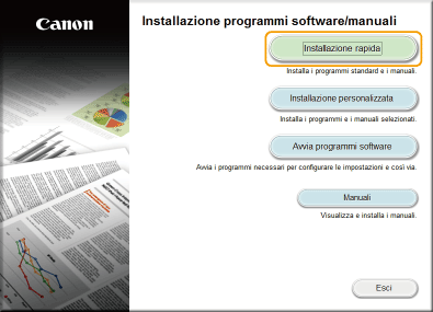Se si desidera installare il software standard e l'e-Manual sul computer, fare clic su [Installazione rapida].
