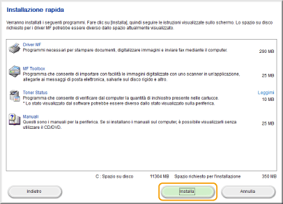 Per installare Toner Status, seguire le istruzioni sullo schermo.