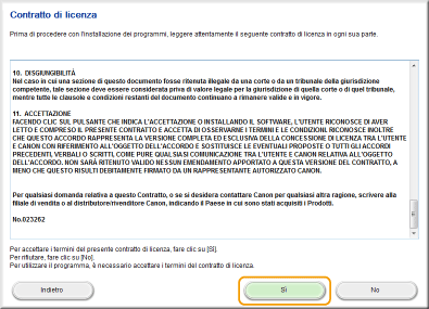 Leggere l'Accordo di licenza e fare clic su [Sì] per accettare.