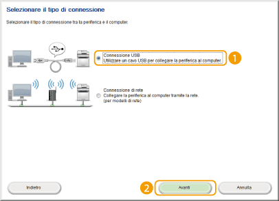 Selezionare [Connessione USB] e fare clic su [Avanti].