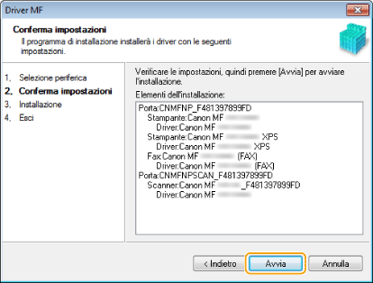 Controllare le informazioni visualizzate e scegliere [Avvia].
