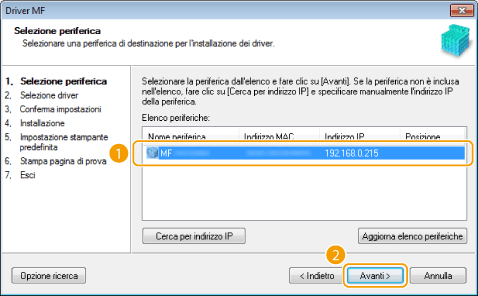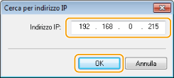 Visualizzazione delle impostazioni di rete (e-Manual)), quindi fare clic su [Aggiorna elenco periferiche]. Se la macchina continua a non essere visualizzata, fare clic su [Cerca per indirizzo IP]