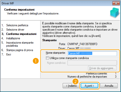Se è stata selezionata la casella di controllo [Utilizza come stampante condivisa]/[Usa come fax condiviso], installare i driver aggiuntivi se necessario.