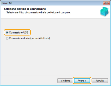 Selezionare [Connessione USB] e fare clic su [Avanti].