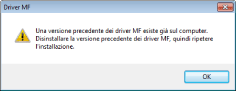 Se è già installata una versione precedente, quando si installa la versione nuova compare una schermata simile a quella seguente e l'installazione viene annullata. Disinstallare la versione precedente prima di installare quella nuova. Disinstallazione |